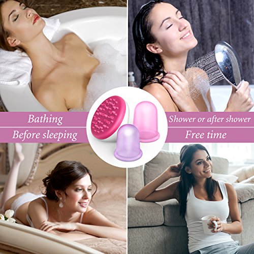 - UNPARALLELED EASE – Cellulite suction cup squeezes effortlessly for creating vacuum, 2 different sizes of cup ensure suitability for different body parts: neck, triceps, buttocks, tummy, hips, thighs and legs. Ergonomic brush handle helps to use it effortlessly, and a detachable handle with a head makes cleaning easy
