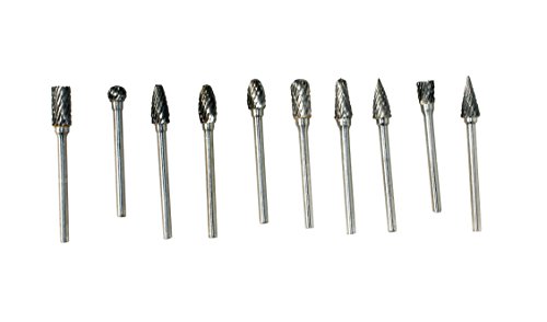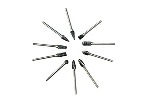 - 10 pieces Double Cut Solid Carbide Rotary Burr Set, 3mm(0.118) inch shank , fits dremel and most small rotary tools