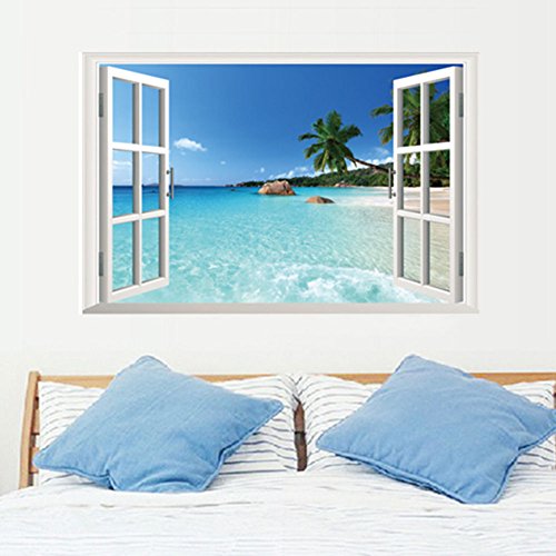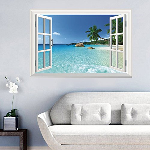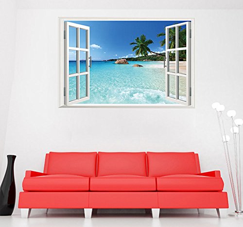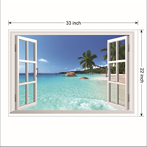 -. Title : 3D Window Decal Art Wallpaper Mural, Seascape Wall Stickers, Removable Wallpaper, Waterproof Wall Murals 22" x 33"