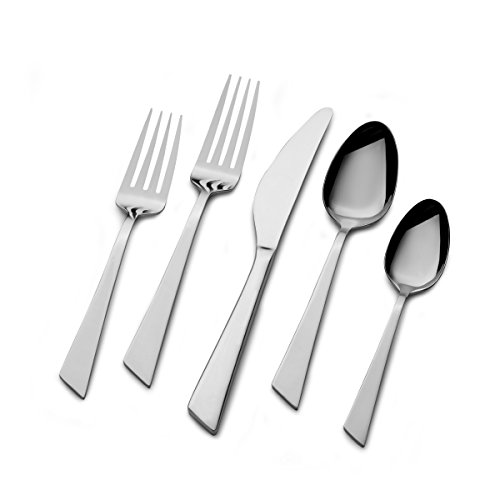 - 20-piece set with service for 4 includes 4 each of dinner forks, salad forks, dinner knives, dinner spoons, and teaspoons