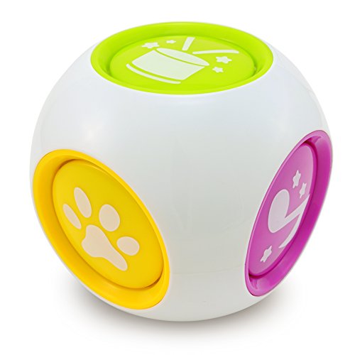 An interactive cube looking toy with a different function button on all 6 sides; Learn alphabets, numbers, colors, music, animal sounds and musical instruments.