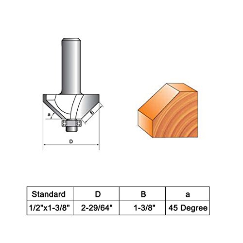 uxcell 2-29/64-inch Dia 1/2-inch Shank Carbide Tipped Chamfer Router Bit 45 Degree with 1-3/8-inch Cutting Length
