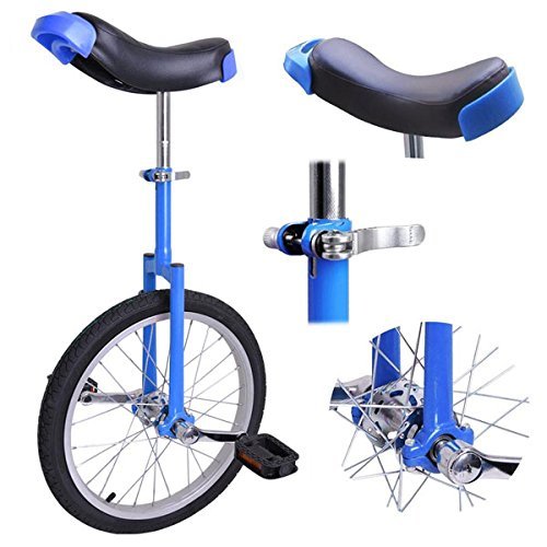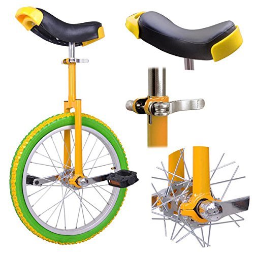 FEATURES: 18" wheel (18" x 1.75" Tire) FRAME: Excellent manganese steel; Standard unicycle frame/p> CRANK ARMS: WHEEL TOP Crank, International Quality OUTER TIRE: Skid Proof INNER TIRE: Leakage protection butyl tire BEARING: Heavy manganese steel mute bearing SADDLE: Large saddle with removable poly-nylon guarded rails SEAT POST CLAMP: Quick release; alloy aluminum RIM: Extra thick alloy aluminum rim FORK: Steel fork with powder-coated finish *Suitable for novices and professionals alike **Designed according to somatology and movement features Important: 1. When riding the unicycle, one leg should be straight while the other foot is on the pedal in its lowest position. 2. Novice riders should ride only when accompanied by professionals or persons with experience riding the unicycle. 3. Novice riders should take proper precautions while learning to ride the unicycle. Proper head and body protection gear is highly recommended for safety purposes. 0 |