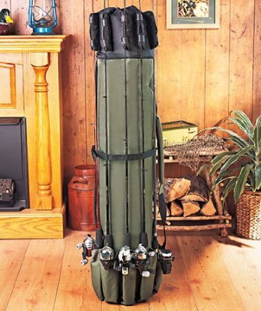 -. Feature : Khaki Green- A greenish khaki color with black trim. / The carry case holds 5 rods and reels on the outside, plus more rods, reels, tackle and equipment on the inside. / Heavy duty grade high-tech polyester. If any problem, please feel free to contact us! / Adjustable shoulder strap. Flat-Expands to 48 inches high and 13 inches in width. / If you love to fish, this is the perfect organizer for you.