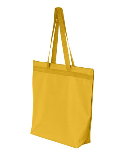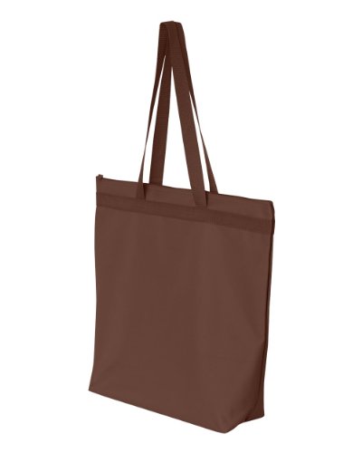 Studio : Liberty Bags Publisher : Liberty Bags Product Description 600-denier polyester Contains 50% recycled material Durable construction Gusseted bottom Color-matched 28" handles, zipper and zipper pull Zippered closure Durable webbing reinforced top 18"W x 16"H x 4.5"D 0