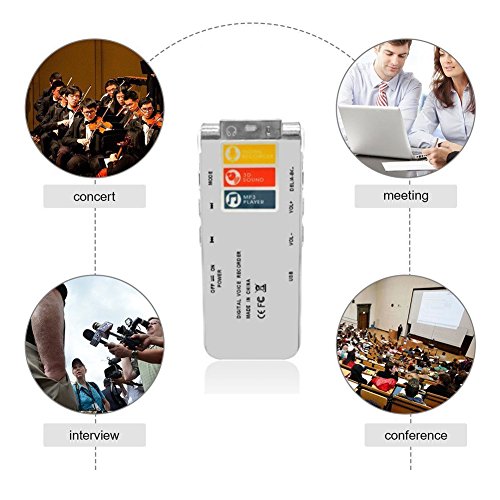 ✔ RECORD CRYSTAL CLEAR AUDIO: Double ultra-sensitive microphones with dynamic noise reduction Means you can enjoy crystal clear recordings even while you're up to 40ft away or to record quiet, discreet conversations. Good tool for for interviews, meetings, lectures, record sermons at church and etc. Support WAV recording, music playing and long-time recording.Telephone recording function allows you to record detailed conversations.