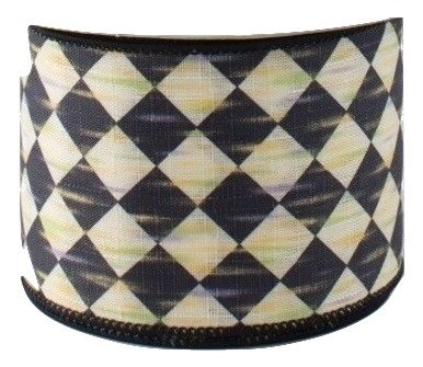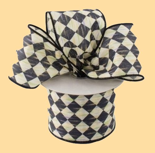 Black and Cream Checkered Harlequin Wired Ribbon 2.5" Wide x 10 Yards