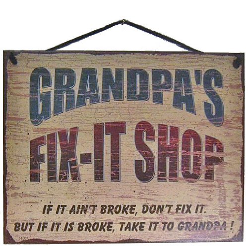 Vintage Wall Signs for Grandma and Grandpa - Antique Style Gifts (Grandpa's Fix It Shop)