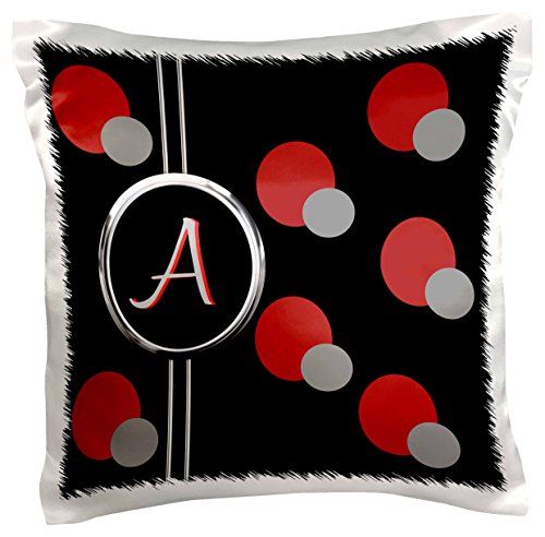 3dRose pc_215244_1 Modern Geometric black Red Grey Circle Pattern Monogram Letter A - pillow Case, 16 by 16"