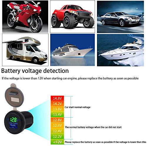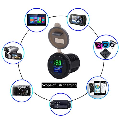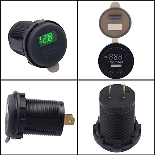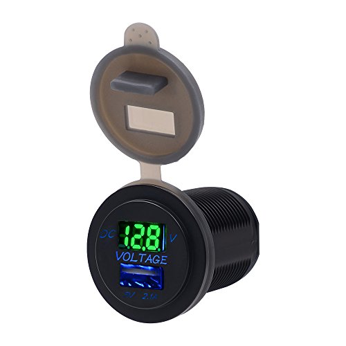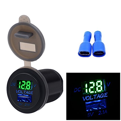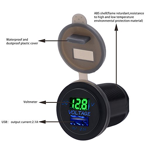 BlueFire 2.1A 12-24V USB Car Motorcycle Charger Socket + LED Voltmeter Display for Boat / UTV / Camper / Caravans(Green)