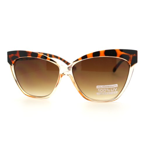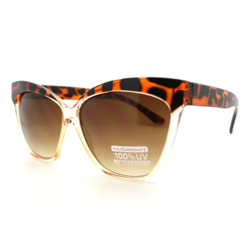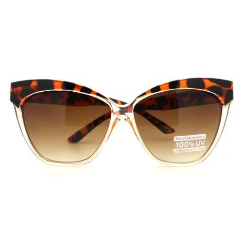 2 Tone Tortoise Clear Oversized Cat Eye Sunglasses with Thick Frame