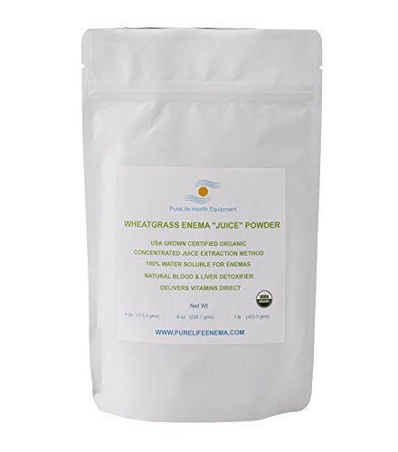 -. Binding : Health and Beauty -. Brand : PureLife Enema -. EAN : 0609408043062 -. Feature : 1/4 Lb Freeze Dried Organic Wheatgrass Juice Powder - USA Grown - USDA Certified Organic / Concentrated Formula - Extra High Concentration of Vitamins -GMO & Gluten Free - / Enema Specific - 100% Water Soluable / Exceptional for enemas and drinking! / Instructions (Best Used with Purelife Glass Enema Buckets) -. IsAdultProduct : 0 -. Label : Purelife Enema -. LegalDisclaimer : Please seek your doctors advice before doing enemas. We are not doctors and none of the information given is meant to be doctors advice -. Manufacturer : Purelife Enema -. PackageQuantity : 1 -. ProductGroup : Health and Beauty -. ProductTypeName : HEALTH_PERSONAL_CARE -. Publisher : Purelife Enema -. Size : 1.5 Qt -. Studio : Purelife Enema -. Title : Wheatgrass Juice Powder - Enema Specific - Liver Detoxification- Blood Energizer - Colon Healing -. UPC : 609408043062
