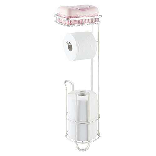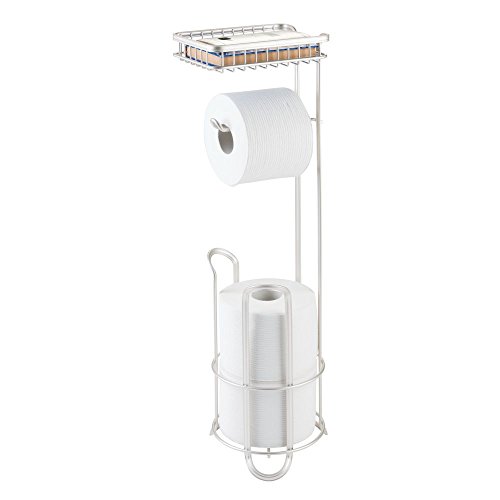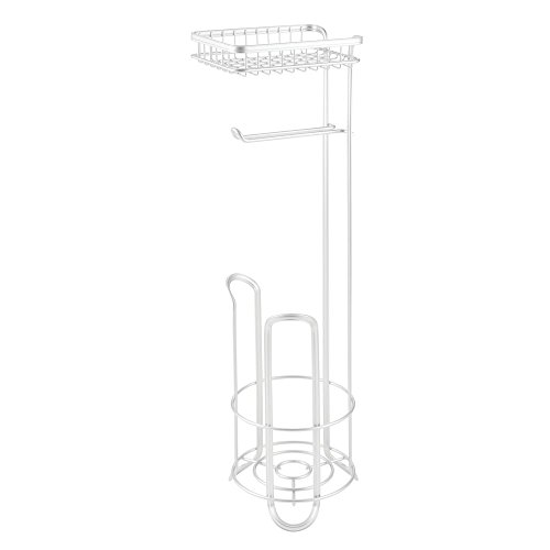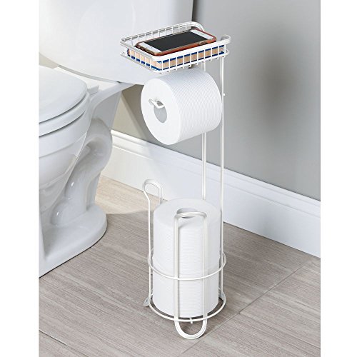 InterDesign York Lyra Free Standing Toilet Paper Dispenser and Holder with Storage Shelf for Bathroom – Matte White