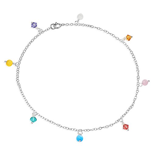 -. Title : 925 Sterling Silver Multi Colored Crystal Glass Beaded Anklet, 9.5 inches