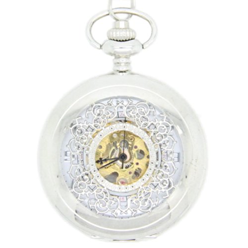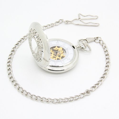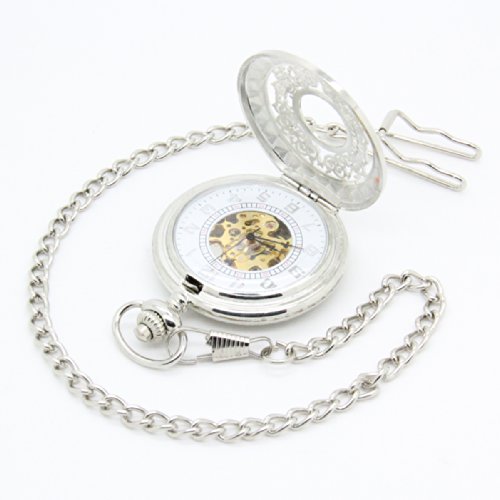 -. Title : E-future Vintage Skeleton Steampunk Mechanical Chain Pocket Watch Silver