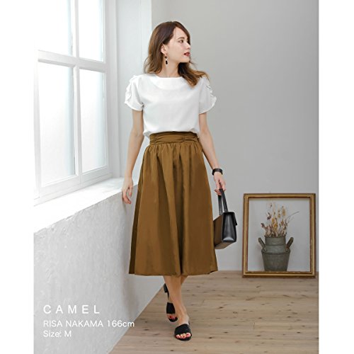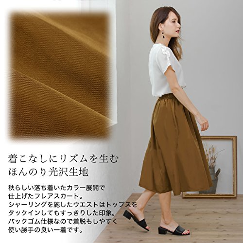 -. Title : ReEDIT(リエディ)フレアスカート ひざ下丈 膝下丈 ウエストゴム シャーリング 秋カラー 光沢