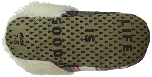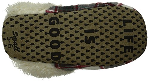 -. Binding : Apparel -. Brand : Life is Good -. Color : Red Plaid -. Department : womens -. Feature : Size S= 5/6, size M= 7/8, size L= 9/10 / Faux suede sole with grippy messaging on the bottom / The Life is good company donates 10% of all sales to kids in need -. Label : The Life is good Company -. Manufacturer : The Life is good Company -. ProductGroup : Sports -. ProductTypeName : OUTDOOR_RECREATION_PRODUCT -. Publisher : The Life is good Company -. Studio : The Life is good Company -. Title : Life is Good Slipper Holiday Ivory Socks, Red Plaid