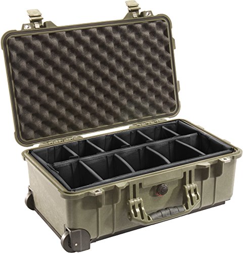 Pelican 1510 Carry On 22x13x9in Wheeled Protector Case, OD Green w/Padded Dividers 1510-004-130
