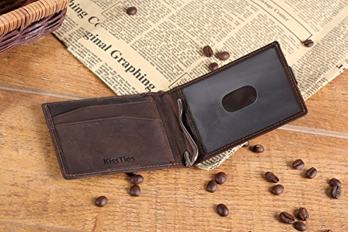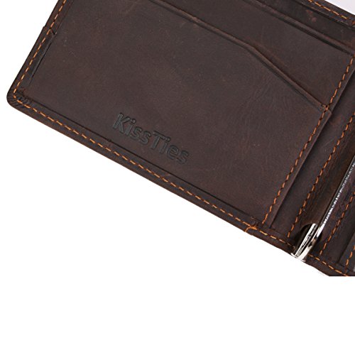 -. Title : KissTies Mens Wallet Top-Grain Leather Bifold Front Pocket RFID Block Money Clip