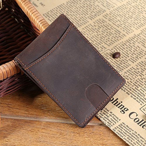 -. Feature : KissTies Top Grain leather slim bifold wallet contains 4 Card Slots, 1 ID Display Window, 1 Cash Money Clip, this handy wallet is thin, durable, well-made, Minimalist. Wallet case also has smart pull-strap for quick access to your everyday cards. With thumb hole, it also easy to remove ID/Driver License from the ID window. It is thin, not bulky, perfect for people who are looking for slim and small wallet to hold money and cards. / Material: 100% High quality crazy horse top grain genuine leather with skilled line Stitching finish, wear-resistant and durable. The surface remains all the scratches and spots reserved.The surface of the premium crazy horse leather will change its color if you gently stroke the surface.As time goes on,it becomes bright and lustrous,smacking of strong retro style. / Size: 4 x 3 x 0.4. Less than half inch thickness makes it a perfect as a front or back pocket wallet. Slim wallet design fits comfortably in to coat or pants. Allow quick use when traveling or at the store or working place. The bifold functional wallet is easy to carry all your important cards, meet all your daily needs. / RFID blocking, protects you from data crimes. RFID Blocking inner material is engineered specifically to block 13.56 MHz or higher RFID signals and protect the valuable information stored on RFID chips from unauthorized scans. / KissTies wallet has 12 months warranty covers any factory defects as a result from the manufacturing process of the product. If you have any problem, please contact us by message. We will try our utmost to resolve for you as soon as possible.