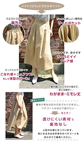 -. Title : ミモレ丈 イージー フレアスカート レディース 体型カバー お洒落 ウエストゴム フェミニン ひざ下 美脚ボトムス タックスカート