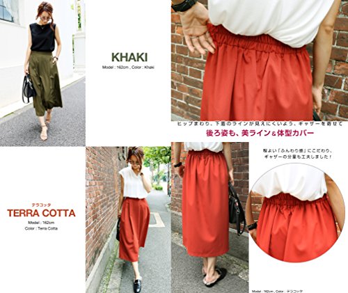 -. Feature : ありそうでなかった絶妙Aライン!シルエットにこだわりを感じられるちょうど良いフレアが魅力のミモレ丈スカートです。さらっとしたマットな質感の薄手ツイル生地になります。 / サイドポケットあり。ウエスト後ろ側がシャーリングゴムで ゆったり 楽ちん!自分のウエストにフィットしてくれるのでリラックスした着心地。体型カバーにもなります!オーバーサイズ トップスで ゆるシルエットにも、かっちり系のシャツにも相性GOODです。 / 袖コンシャス シフォン ブラウス オフショル カットソー ゆるかわ ニット セーター Tシャツ カーディガン など、どんなスタイルにも対応できるミディ丈スカート!足もとは パンプスでもスニーカーでもオシャレです。 / シンプルで使いやすい キレイめパンツですので、10代 20代 30代 40代 50代 かかわらず自分らしいコーディネートを楽しんでいただけますよ。ワンランク上の おしゃれ をお楽しみください。 / 【サイズ】M【カラー】テラコッタ、カーキ、ベージュ、ブラック、マスタード【素材】ポリエステル63% レーヨン33% ポリウレタン4%※安心・安全・便利なAmazonプライム(P.R.Ime)のFBA倉庫発送で、24時間対応・お待たせしない 即日発送・送料無料にてお届けいたします。
