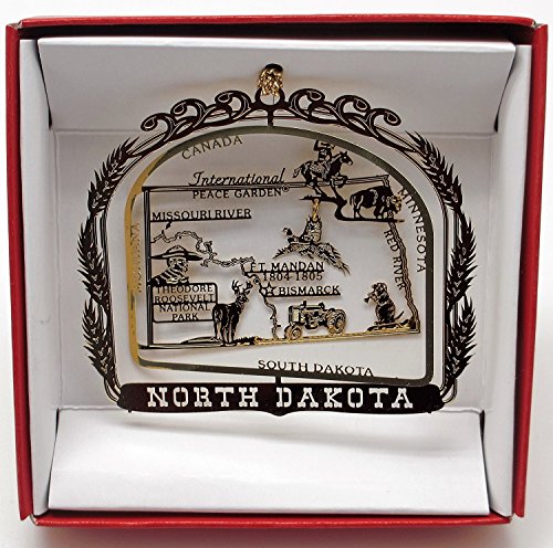 - North Dakota State Brass Christmas Ornament Souvenir Gift