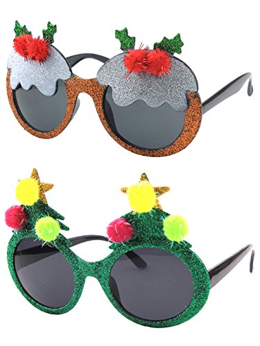 Title : Christmas Sun Glasses Costume Accessory Novelty Glitter Xmas Tree and Rudoph Sunglasses