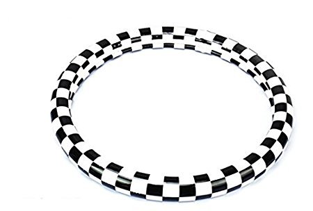 -. Title : BMW MINI チェッカー ブラック ハンドルカバー 直径 38cm 白 黒 チェック 柄 気持ちいい 手触り 高級 スウェード 調 ハンドルカバー MGC JAPAN TRADE