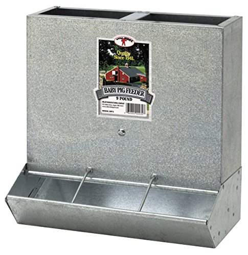 -. Feature : Open trough for starting baby pigs / Easy removal and replacement of soiled or stale feed / Three feeding holes, designed for crate or stacked deck nursery / Freestanding or wall mounted, with easy loading from the top / 24-gauge galvanized steel, 9-lb. capacity.