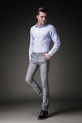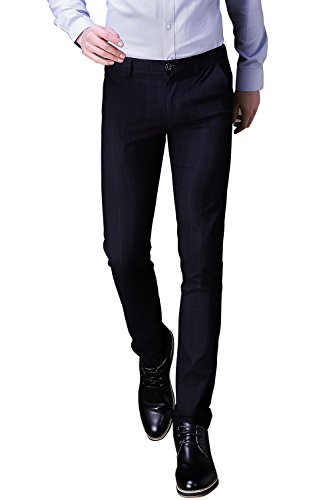 FEATURES: this plaid casual/ formal pants with for mens featuring two slant and two rear pockets for storage and decoration, quality button and smooth metal zip for closure. Belt loops design for waist adjustment. Straight leg/Mid rise/Slim fit