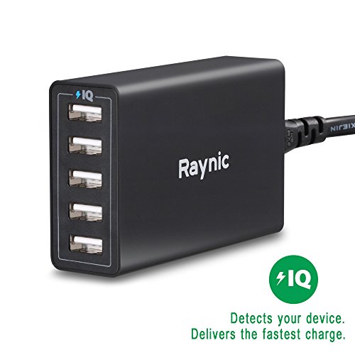 Raynic 5-Port USB Charging Station High Speed with PowerIQ Technology(Black)