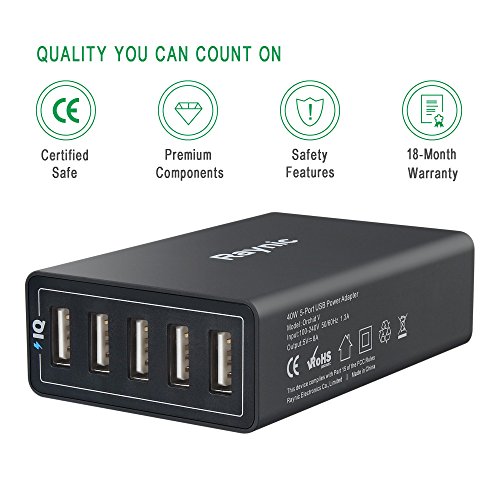 Ultra Powerful: Five ports pump out 40 watts of power, enabling simultaneous multi-device charging. Rated DOE Level 6 for energy efficiency, charge 5 devices in the same time with fast charge