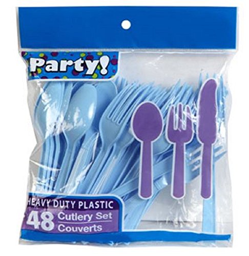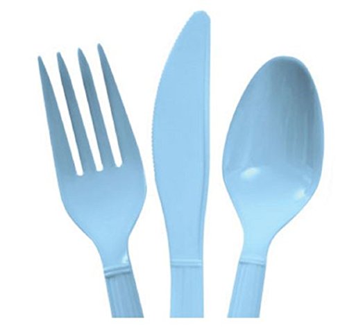 Product Description Combo packs of baby blue utensils are perfect party supplies. Each 48-piece bag contains 16 forks, 16 knives, and 16 spoons. You will get Two - 48 piece packages for a total of 96 pieces. 0