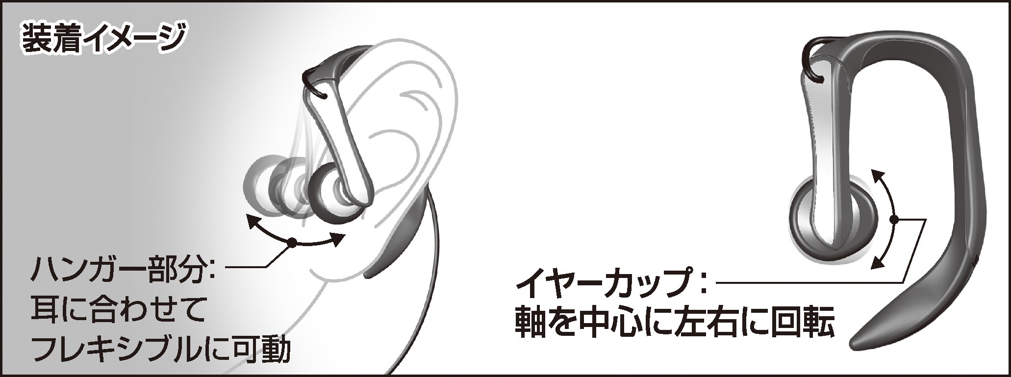 A comfortable wearing feeling is realized with a hanger part which can move flexibly according to the shape of the ear and a rotary earcup.