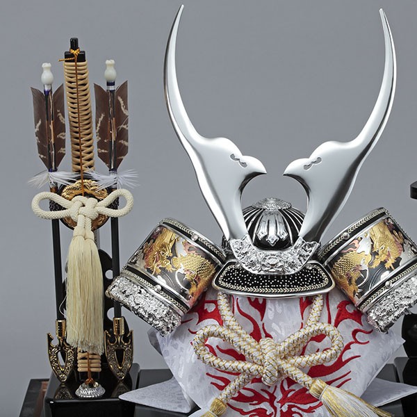 ・五月人形兜飾りには、お子様の健康な成長を願って勇壮に力強く仕上げました。