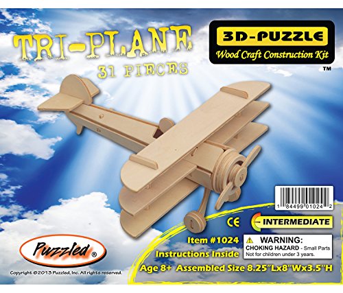 -. Binding : Toy -. Brand : Puzzled -. EAN : 0184499010242 -. Feature : Product is made of wood and care must be taken during assembly. / Tri-Plane Small 3D Puzzle by Puzzled Inc. / Dimensions: 0.25in H x 7.31in W x 9in L / Age: 6 and Up - -. IsAdultProduct : 0 -. Label : Puzzled Inc -. Manufacturer : Puzzled Inc -. Model : 1024 -. MPN : 1024 -. PackageQuantity : 1 -. PartNumber : 1024 -. ProductGroup : Toy -. ProductTypeName : TOYS_AND_GAMES -. Publisher : Puzzled Inc -. Studio : Puzzled Inc -. Title : Puzzled Tri-Plane Wooden 3D Puzzle Construction Kit -. UPC : 184499010242