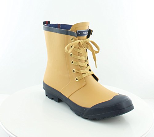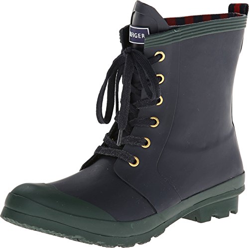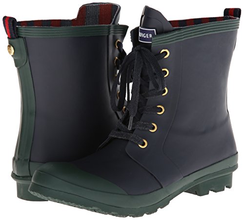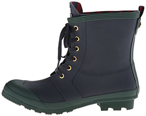 Rain boot with contrast toe cap featuring lace-up closure and logo on tongue