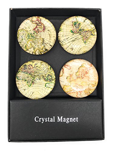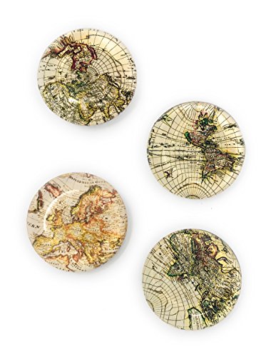 Vintage World Map Glass Magnets - Assorted Set of 4