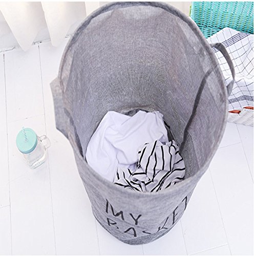 -. Feature : ROOMY INTERIOR: The laundry hamper provides attractive and lightweight solution to many storage needs such as Clothing Storage (especially for underwear, socks, bra, etc.), Home Textiles Storage, Toy Storage, Baby Product's Storage and Pet Product's Storage / EASY TO USE: The laundry hamper adopted collapsible design, equipped with handles and only weights 12oz/340g in average. It is lightweight and portable for using, storing, and moving conveniently / COLLAPSIBLE DESIGN: Durable materials of cotton and linen with two thick leather handles on the sides for easy lifting and carrying. Wipe with damp cloth for easy cleaning / TOTE HAMPER: Each of our collapsible laundry baskets is equipped with a set of handles that let you carry it to the laundry room with ease / AMPLE SIZE: 19.7 in (height) x 15.7 in (diameter)/50 cm (height) x 40 cm (diameter)