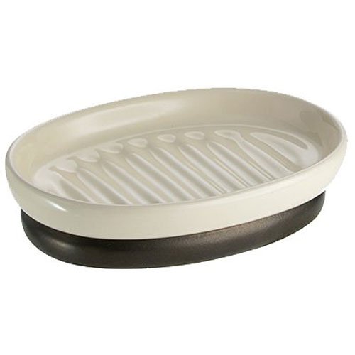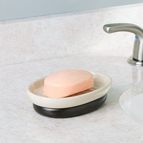 InterDesign York Ceramic Bathroom Vanity Soap Dish, Ridged Soap Saver Design, Vanilla/Bronze
