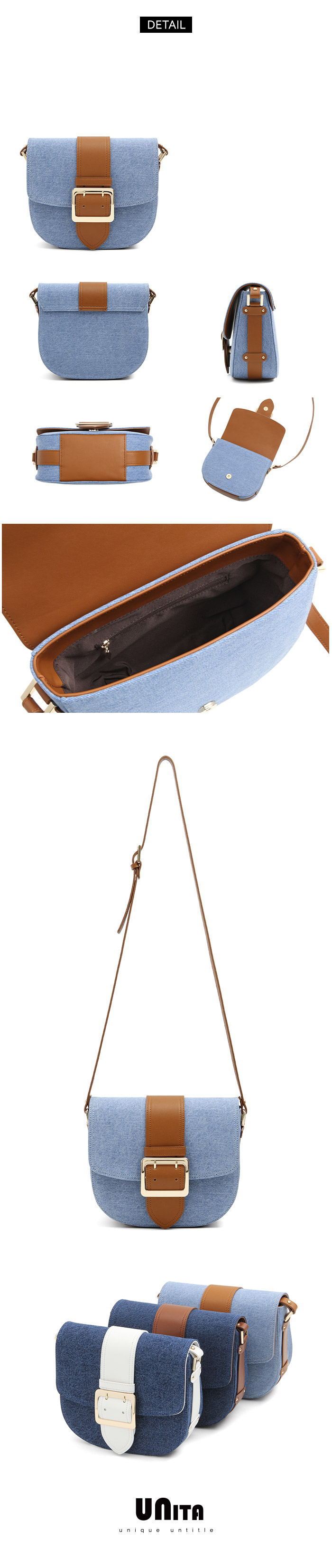 Women`s Big Buckled Demin Mini Bag Shoulder Bag