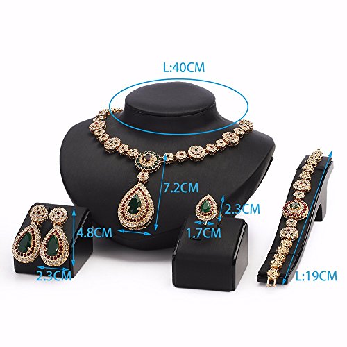 -. Feature : 2015 New Arrival Jewelry for Celebrition, Costume, Party, Wedding, Show / Jewelry Sets of necklace & bracelet & ring & one pair of earrings / Gold-plated is harmless and hypoallergenic for human / Smooth cutting technolgy for Cubic Zirconia Stone and Crystal surface / Chain length: 15.75inch, bracelet length: 7.09 inch