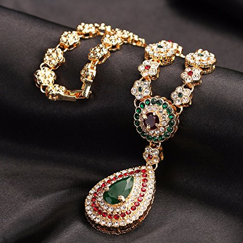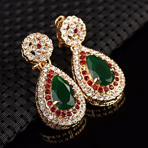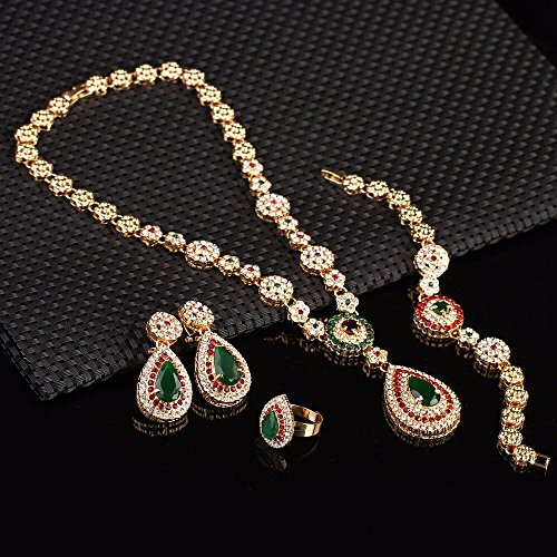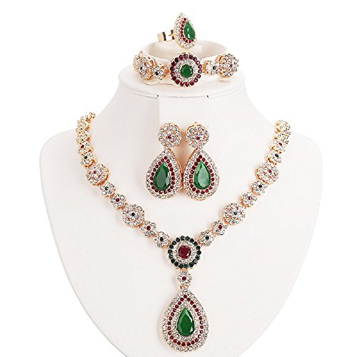 -. Title : Women Gold Plated Jewelry set Red & Green Beads Oval Pendant Necklace Earrings Bracelet Ring