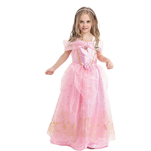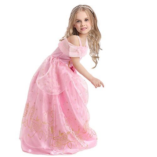 -. Binding : Apparel -. Brand : Enjoy Fashion -. Department : girls -. Feature : Dress back with zipper,easy to wear / Skirt with 3 layers / Great for birthday party,halloween,christmas / The dress is made of super comfy and non scratchy material / Note:size runs a little big.size3 for 3-4 years,size4 for 4-5 years,size5 for 5-6 years,size6 for 6-7 years,size7 for 7-8 years -. ProductGroup : Apparel -. ProductTypeName : DRESS -. Title : EnjoyFashion Girls' Princess Aurora Costume Party Fancy Cosplay Dress