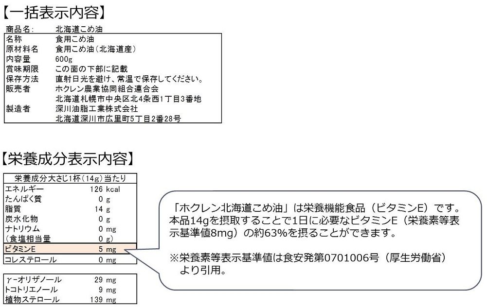 Hokuren Hokkaido rice oil is a nutrition functional food.