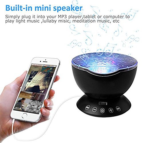 -. Title : Fipart Remote Control Ocean Wave Projector with Build-in music player 12 LED &7 kinds of lighted modes for Living Room and Bedroom (Black)