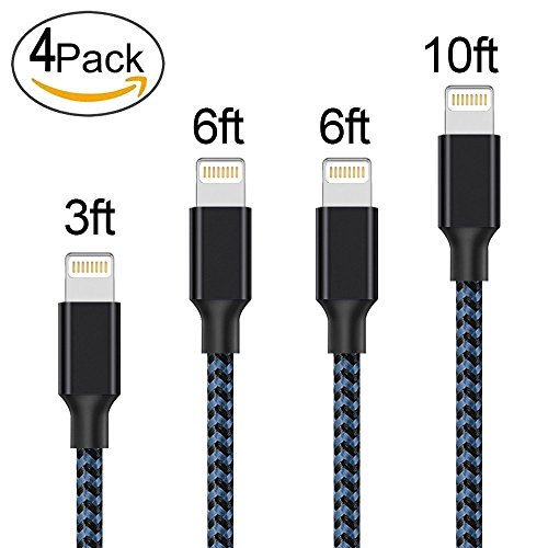 -. Feature : Using High-Quality Nylon Braided jacket and Core Material, Precise interface Design. The Unique Design Of High Voltage can keep Good Signal and High-Speed Stability. / iPhone SE/7/7Plus/6Plus / 6s Plus/ 6s /6/ 5s / 5c / 5, iPad Air / Air 2, iPad mini / mini 2 / mini 3, iPad (4th generation), iPod nano (7th generation) and iPod touch (5th generation). The super slim Lightning connector head slots into virtually all case openings. Don't be denied your case of choice by a bulky cable. / Connects to your iPhone, iPad, or iPod with Lightning Connector and charges/syncs by connecting the USB connector into your wall charger or computer. / 4 Packs! Every package contains three cables in different lengths 3 ft, 2X6 ft, and 10 ft for various distances charging! Make your life more convenient. / Date lines are double-sided plable, two contacts coupled with anti-oxidation is not rusty gold-plated.If you have any questions, please contact us. We will provide you with a satisfactory solution!