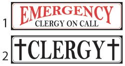 Clergy Signs - 3" x 12" Car Window Signs - Set of 2 - Emergency & Standard options
