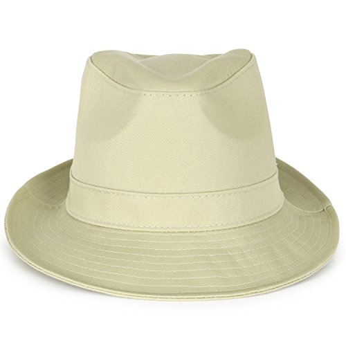 Binding : Apparel Product Description ililily Solid Twill Cotton Small Brim Structured Classic Trilby Fedora Hat Style: small brim structured classic trilby fedora hat in 3 colors Design detail: SIMPLE SOLID COLOR TWILL COTTON VINTAGE TRILBY FEDORA HAT with hatband / high quality and designed for classic fashion / can be worn casually or dressed up for professional or formal attire. Brim: modern narrow brim fedora hat with down-turned front Crown: TEARDROP SHAPED TOP hat with PINCHED CROWN Inner band: 23.6'/ 60cm / brim width: approx. 2.28'/ 5.8cm Material: 100% Cotton Wash Instruction: Dryclean Only Measurement: Large Inner Band:7 1/2 (60cm)